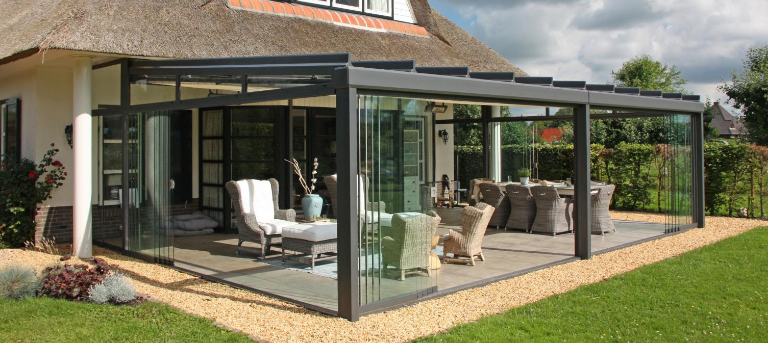 Das ERHARDT T INTEGRAL wirkt durch seine moderne Konstruktion zeitlos und filigran – bei großen und bei kleinen Lösungen – trotz höchster Stabilität und Langlebigkeit. Mit dieser hochwertigen Glas-AluminiumKonstruktion wird Ihre Terrasse zum wettergeschützten Gartenzimmer.